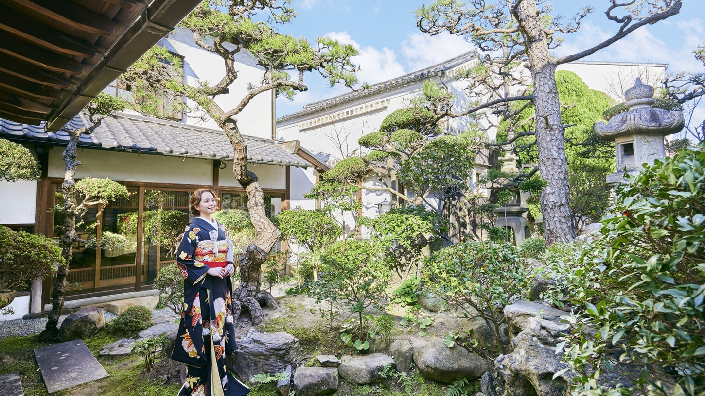 日本建築らしいあしらいはそのままに、今昔融合の美空間。築230年の和邸宅に倉敷のモダニズムを調和させ祝宴の場所として再生された唯一無二の場所。花嫁の審美眼を満たす結婚式がここにあります。