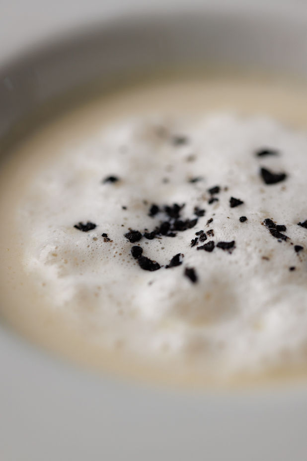 とうもろこしの冷製スープとフォアグラのブリュレ